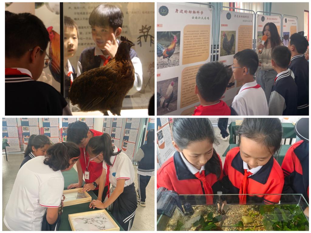 bwin必赢(中国)在线登录入口结合学科特色,围绕“动物”这一主题,组织开展了鸡文化博物馆参观、珍稀动物及云南特色畜禽种质资源科普展、水族箱及植物标本展、动物知识问答等丰富多样的活动。“先有鸡还是先有蛋?”、“蜜蜂对生态系统有什么作用?”、“云南的珍稀动物有哪些?”,在一个个问题的引导下,孩子们了解到动物在生态保护中的重要角色,学习了畜禽种质资源保护和利用的重要性。在水族箱和植物标本展区,孩子们感受到了观赏鱼和植物标本带来的美的愉悦。bwin必赢(中国)在线登录入口的志愿者们耐心讲解、积极互动,用所学专业知识服务、指导前来参与活动的小朋友们,将专业与实践有机融合。
