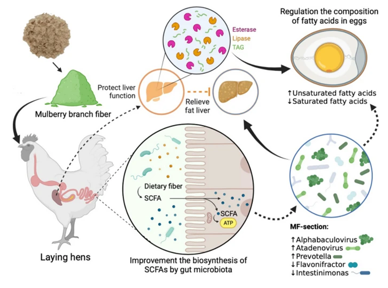 bwin必赢(中国)在线登录入口潘洪彬教授团队在桑枝纤维通过肠肝轴调控蛋鸡脂类代谢和蛋黄脂肪酸组成机制研究取得进展